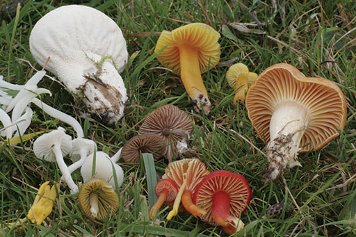The waxcap fungi (genus Hygrocybe, family Hygrophoraceae) are one of the most beautiful and easily recognised groups of fungi (Figure 9). In the UK they are also a target for conservation efforts and statutory designations, since the presence of a high diversity of this group of fungi normally indicates an unfertilised, biocide-free grassland. In 2011, a report from Defra observed the following: