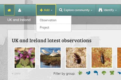 Adding your own observations to iSpot allows you to get the most out of using iSpot and to participate fully. When logged in, you can post observations simply by clicking on the ‘Add observation’ button, or by clicking on the ‘Add’ tab in the taskbar at the top of the home page, as shown in Figure 7.