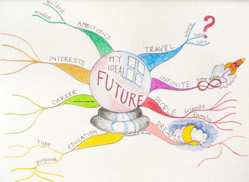 For the next activity, try drawing a mind map of the things you would like to do and to achieve. Start with ‘My future’ in the centre, and see where it takes you! Be as free as you like. Here is an example: