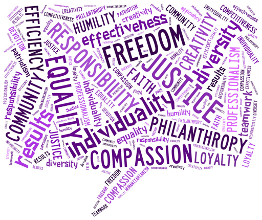 Definitions of values are rather complex. Generally speaking, values are deep-seated beliefs about what is right or wrong and about what is important or unimportant. They are principles, standards or qualities that people care about and that contribute to driving people’s behaviour. Values held by individuals are also supported by a set of unwritten rules or norms about what is socially acceptable behaviour – both personally and within society.