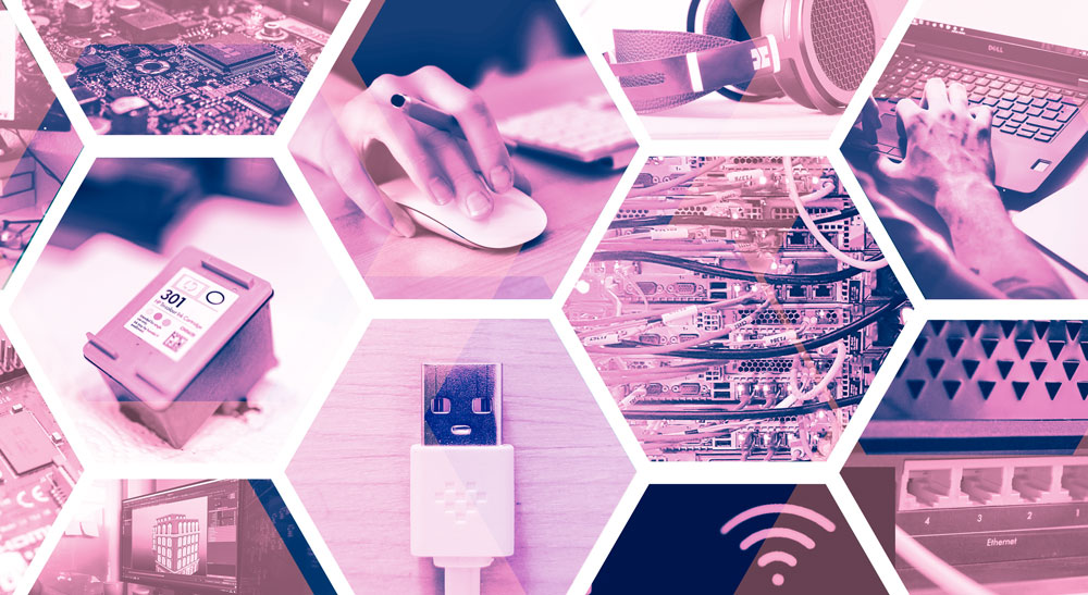 Mae popeth o dagiau olrhain asedau i bwyntiau mynediad WiFi, gliniaduron, ffonau symudol, gweinyddion cyfrifiaduron, gwe-dudalennau a galwadau fideogynadledda eu holion troed carbon eu hunain.