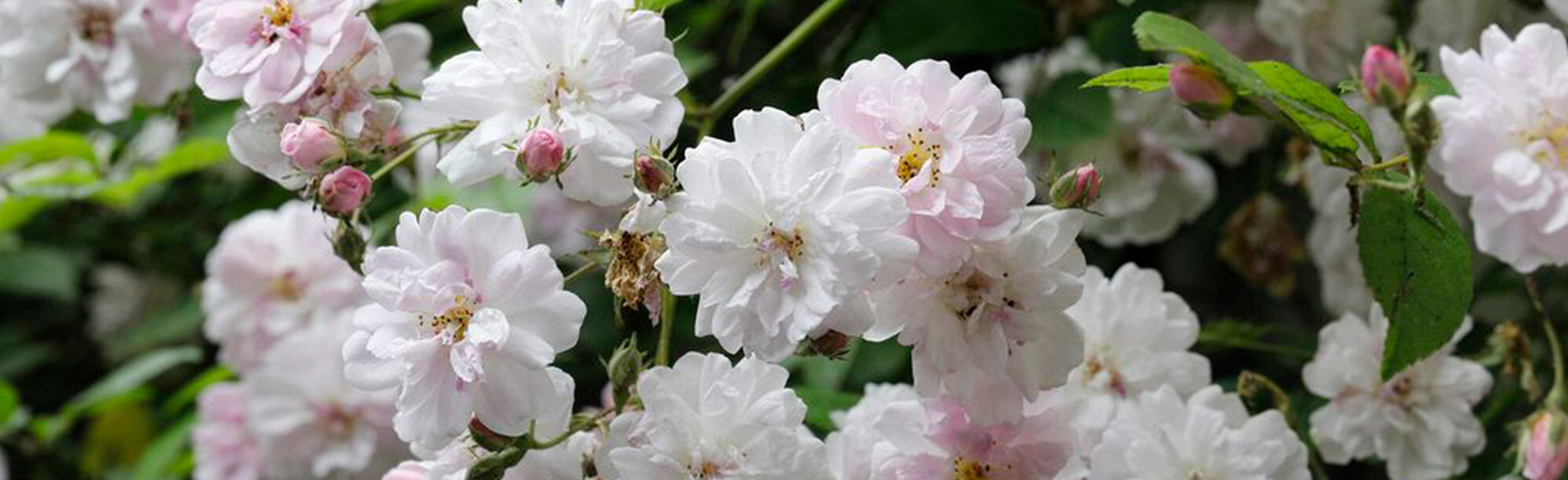 A third species is the Scots or Burnet rose, Rosa spinosissima (‘the most spiny rose’), which has been bred to produce some of the earlier flowering varieties.