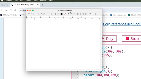 Don’t be precious about this file; it’s just a working place to store ideas, a bit like a sketchbook full of chunks of code. You will use this file for storing, copying, and pasting snippets into different programs.