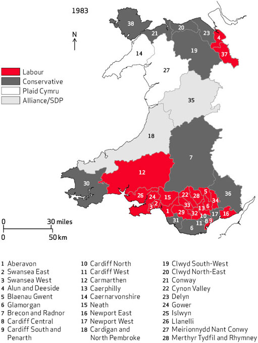 Balsom’s main purpose in devising these categories was to predict and explain variations in patterns of party political voting. He suggested that these regions were already undergoing significant change at the time he was writing. New patterns of work and industry and changing population profiles were undermining old images of a ‘Celtic Fringe’ based on rural, agricultural Wales, and a Labour stronghold rooted in the coal industry. Balsom was especially concerned that changes affecting what he called the ‘traditional south Wales area’ (his ‘Welsh Wales’) would throw into question a form of Welsh identity developed and expressed in the English language. He said that this made it hard to imagine a future sense of Welshness that was not anchored in the Welsh language. In other words, he was predicting the likely disappearance of Welsh Wales as it merged more and more into British Wales. On the other hand, he acknowledged that Wales was still held together by a widely shared sense of being Welsh, and indeed there was evidence that this was being strengthened by the development of Welsh political institutions. From our perspective now, a quarter of a century later, we can judge the accuracy of these predictions.