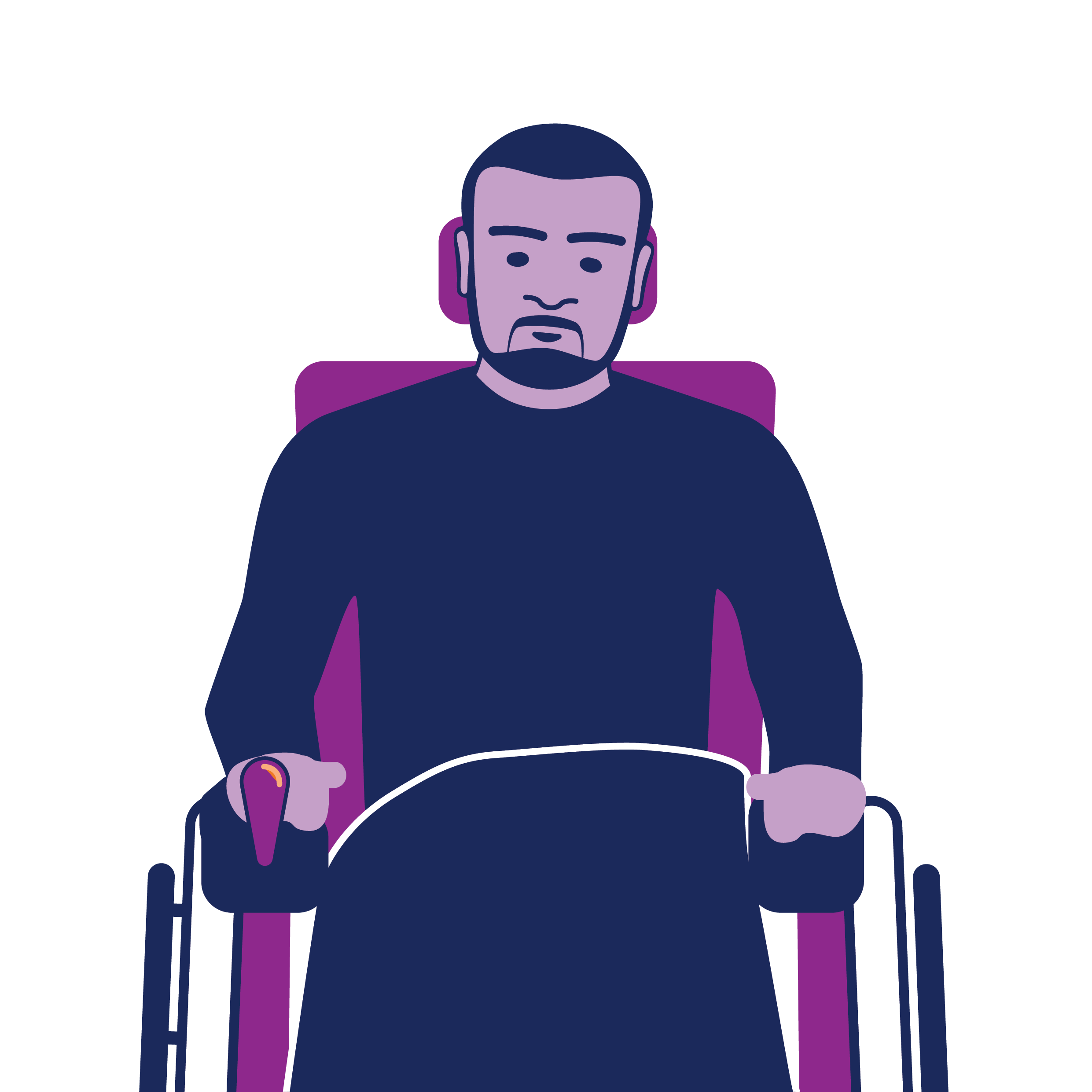 Ahmed is a 45-year-old man diagnosed with MND 2 years ago. He lives with his partner, who is also his carer, in an adapted home. Ahmed uses a wheelchair for mobility and has limited use of his arms. They have no children.