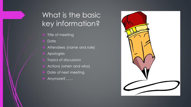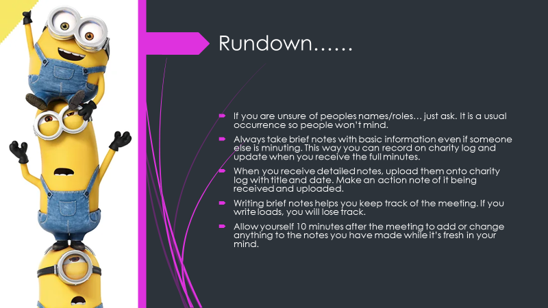 This section of training on minute taking was created by Jenny Jones, Aiming Higher's Reaching Resilience Project Manager.