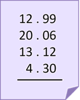 When working with decimal values, it is important to ensure that the decimal point is always in the same position (column) in each row of the calculation. This is easier if the same number of decimal places (i.e. positions to the right of the decimal point) are used for each value in the calculation.
