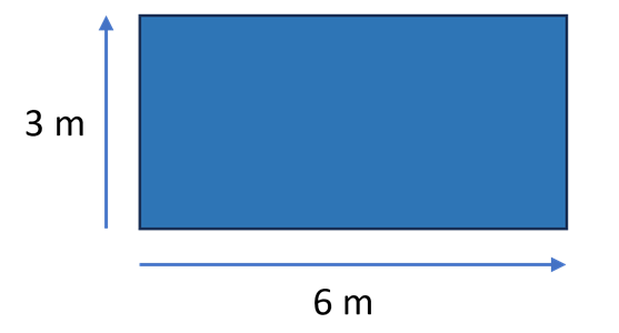 This floor area is a rectangle which measures 3 metres by 6 metres. To calculate the floor area, multiply 3 metres by 6 metres.
