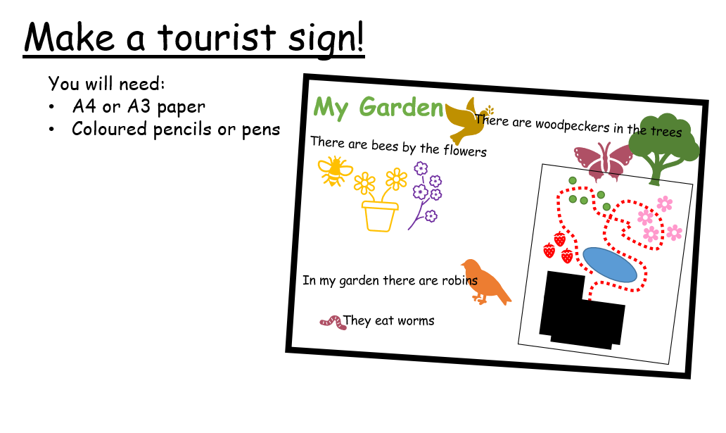 Time to show off one of your favourite places! Putting together all that you know about bird habitats and migration, can you make a tourist sign like the ones above to inform visitors about one of your favourite nature spaces?