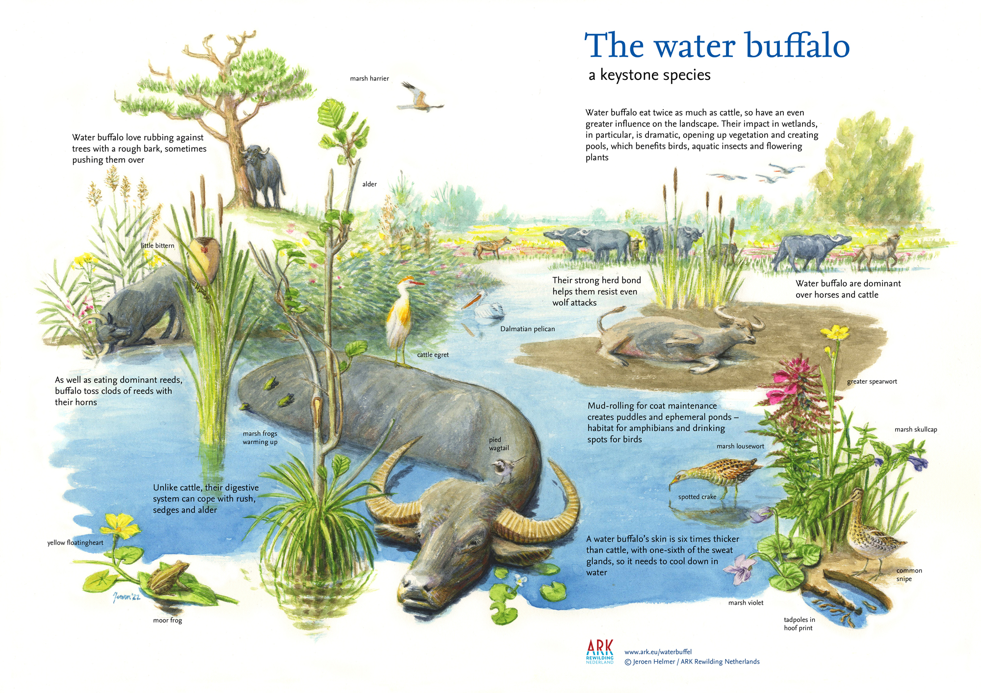The water buffalo: A Keystone species. Credit: Jeroen Helmer / ARK Rewilding Netherlands.