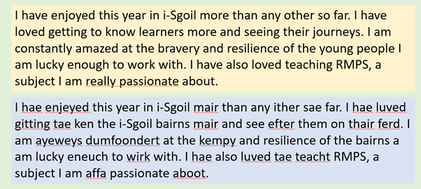 of learners has responded well to Scots based tasks in the past and enjoy the