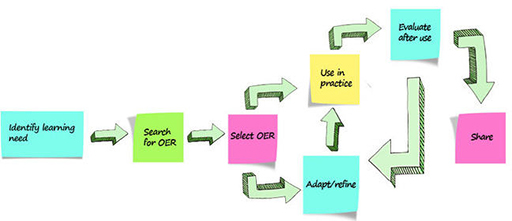 The OER cycle (which was originally designed for the TESS-India course Enhancing teacher education through OER) is also available as a downloadable resource.