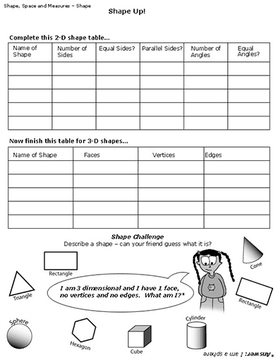 Encourage your pupils to use the vocabulary they have learned in the previous activities to describe their objects. Ask them to add them to their mathematical dictionaries.