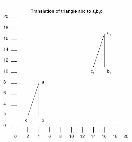 Translation is relatively simple, because it affects the coordinates of all vertices in the same way (for example, all x coordinates will increase or decrease by the same amount).