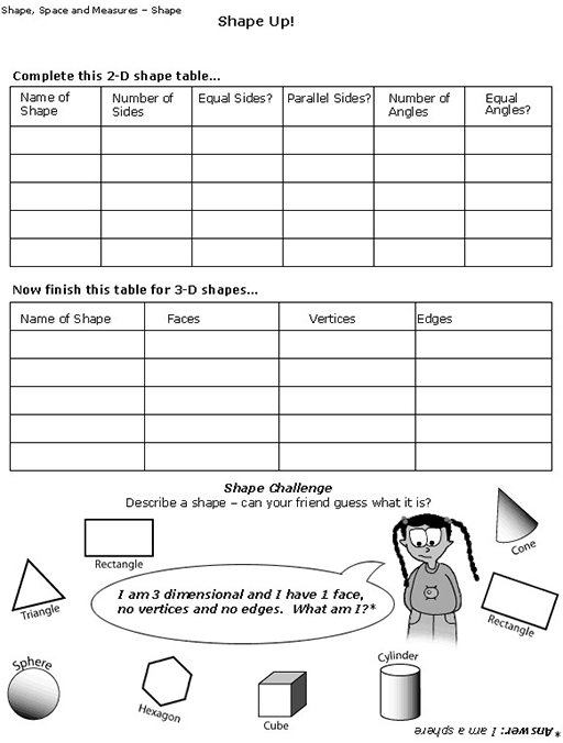 Encourage your pupils to use the vocabulary they have learned in the previous activities to describe their objects. Ask them to add them to their mathematical dictionaries.