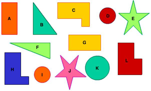 Remember that shapes can be congruent even if one of them has been rotated (as in A and G) or reflected (as in C and H).