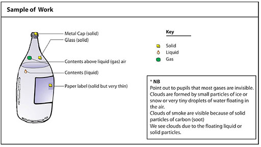 Encourage discussion and feedback from each group. How did they identify liquids? Gases? See Resource 3: Sample of pupil’s work.