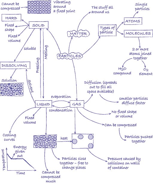 Particle theory is really important and underpins ideas about chemical reactions and properties of materials. It is worth taking a bit of time to make sure that your students understand the ideas and how they link together. It might be helpful for them to produce a teaching resource that would be suitable for younger students or for someone who does not know much science. The teacher in Case study 3 sets such a task for homework so that it does not take too much time out of the lesson, but she does spend some time getting her students to think about what makes a good resource. Students are more likely to do well, if they know what you are looking for. Alternatively they could produce a resource to help them revise, such as a mind map or a concept map, as in Activity 3. Resource 5 explains some background to concept maps and mind maps.