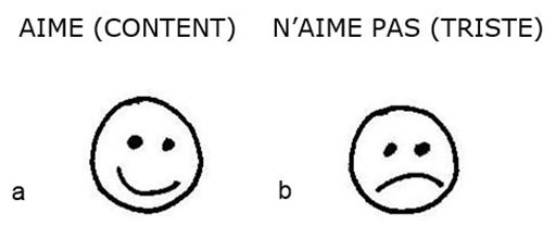 La semaine suivante, M. Moussa a de nouveau demandé aux élèves ce qu'ils aiment ou n'aiment pas, mais cette fois il a dessiné deux visages sur le tableau :