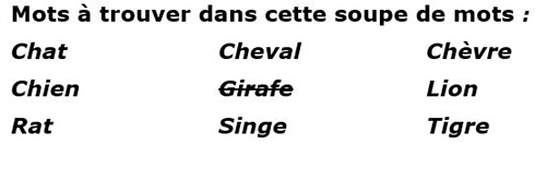 Si des objets (tels que galets ou papier) sont nécessaires pour le jeu, est-ce que ceci est indiqué ?