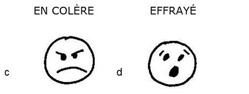 La semaine suivante, M. Moussa a de nouveau demandé aux élèves ce qu'ils aiment ou n'aiment pas, mais cette fois il a dessiné deux visages sur le tableau :