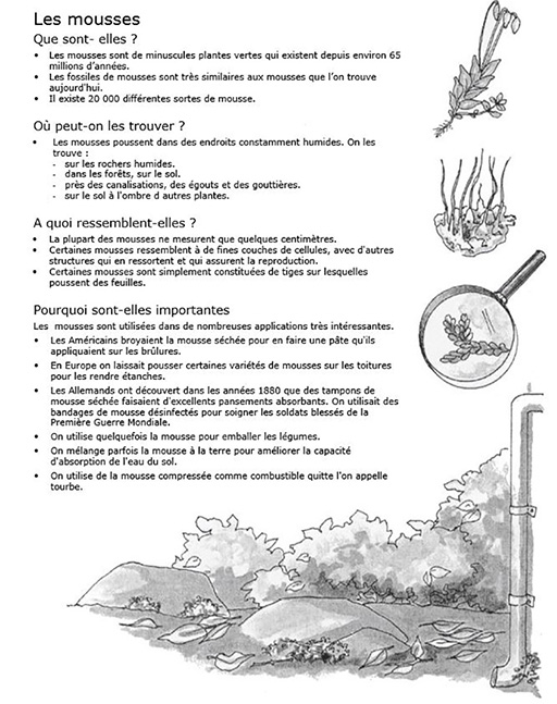 Rassemblez vos élèves autour de la table et demandez-leur quels sont parmi ces six objets ceux qui sont vivants et comment ils le savent. Grâce à vos questions et à une discussion approfondie, vous devriez arriver à établir la liste des sept caractéristiques qui définissent les êtres vivants. La Ressource 3 : Les sept caractéristiques communes à tous les êtres vivants donne les renseignements nécessaires sur les caractères des plantes et des animaux.