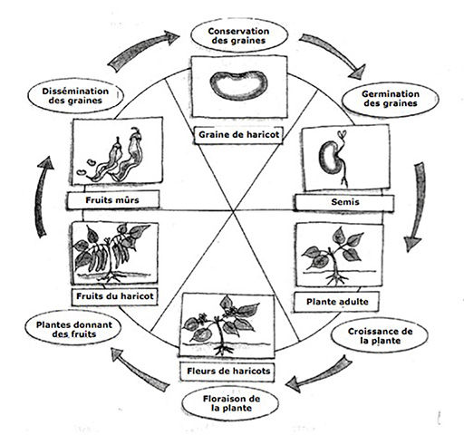 • montre les étapes du cycle de vie d’une plante ou d’un animal;