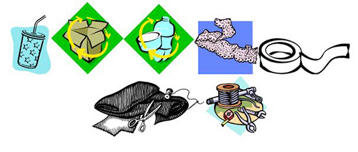 Avant cette activité, demandez aux élèves d’apporter des divers matériaux de rebut ou de récupération. Collectez-en vous aussi. Ces matériaux peuvent être: des boîtes en fer ; du carton ; de la ficelle ; du ruban adhésif ; des pailles ; des bouteilles en plastique ; du tissu ; du filet ; du fil électrique.