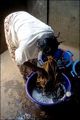 Le matin, elle accueille les élèves en leur langue locale et leur demande des nouvelles. Après que tous se soient réunis, elle dit à l'ensemble de la classe (en français), « Mettez-vous en ligne les enfants » en leur indiquant la véranda vers laquelle ils doivent s'aligner. Puis « Rentrez », dit-elle en faisant des gestes. Ensuite elle leur dit: « Mettez-vous debout à côté de vos bureaux ».