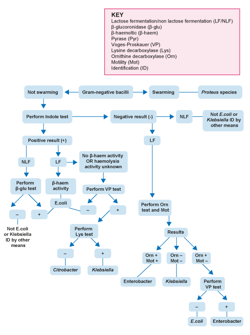 In practice, identification of Gram-negative organisms often proceeds by a process of elimination; one positive test result dictates the choice of a secondary test and so on. This process requires laboratory technologists to have the appropriate knowledge and skills to perform this screening process.