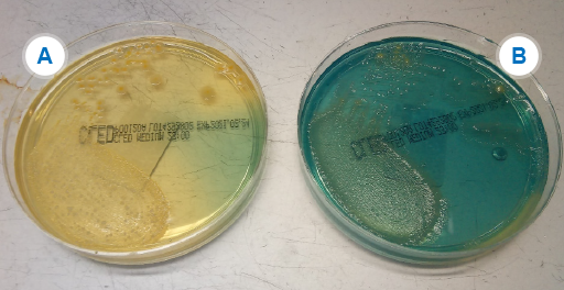 The first step in identification is the appearance of colonies on solid media. For example, on