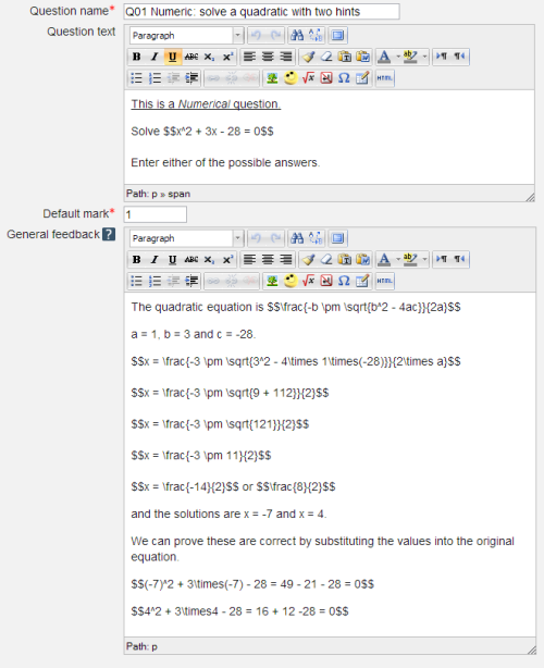 Please spend a little time looking at how these parts of the authoring form come together to give the completed question shown in Figure 2.1. Pay particular attention to how the specific feedback and general feedback are made to read nicely when put together.