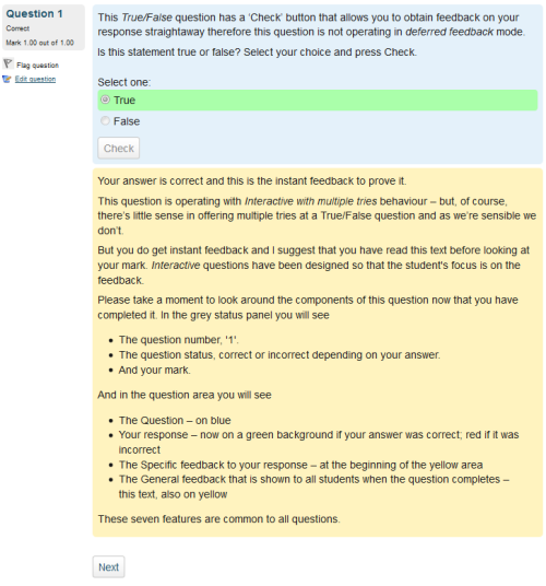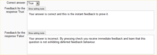 Specific feedback: That is feedback that is specific to the response. In this instance to the possible answers of True and False.