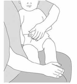 The child shown in Figure 4.15 should be held securely by a caregiver to prevent sudden movements