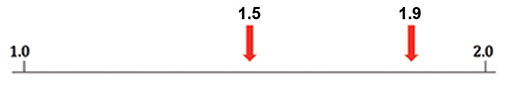 नीचे दिए गए चित्र 5 और 6 यह चित्रित करते हैं कि स्थानीय मान को समझने में सहायता के लिए संख्या रेखाओं का उपयोग अधिक बड़ी संख्याओं और साथ ही दशमलवों तक कैसे विस्तृत किया जा सकता है: