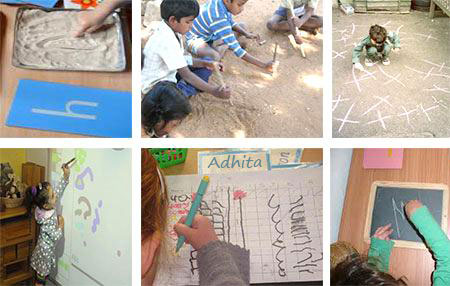 लेखन का विकास करने में हस्तलेखन का अभ्यास करना आवश्यक होता है। यहाँ दी गई दो ’कागज़रहित’ गतिविधियों को पूरा पढ़ें और अपनी कक्षा में आजमाने के लिए कोई एक चुनें। (पहले किसी सहकर्मी के साथ इसे आजमाकर देखें।)
