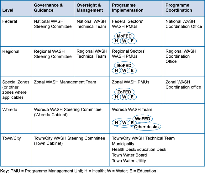 Figure 7.1 Organisational structure of the OWNP. (Adapted from WIF, 2011, OWNP, 2013 and POM, 2014)