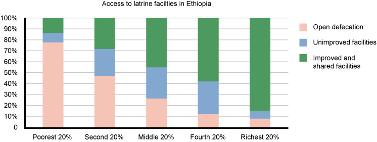 Figure 3.4 Access to latrine facilities in Ethiopia for different wealth groups. Data is for 2012 and for the entire population, not just those in urban areas. (Adapted from UNICEF, 2014)