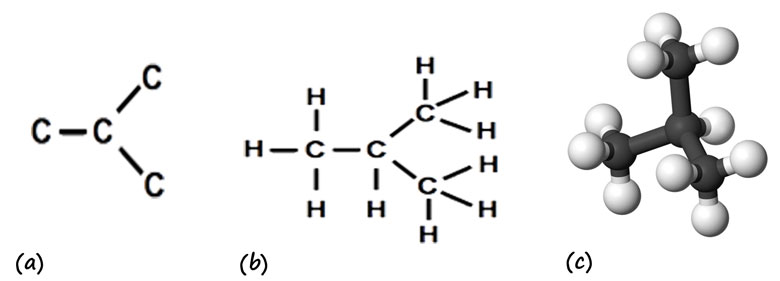 Figure 5(a) Diagram of carbon skeleton, (b) Diagram of structure and (c) Physical model of molecule