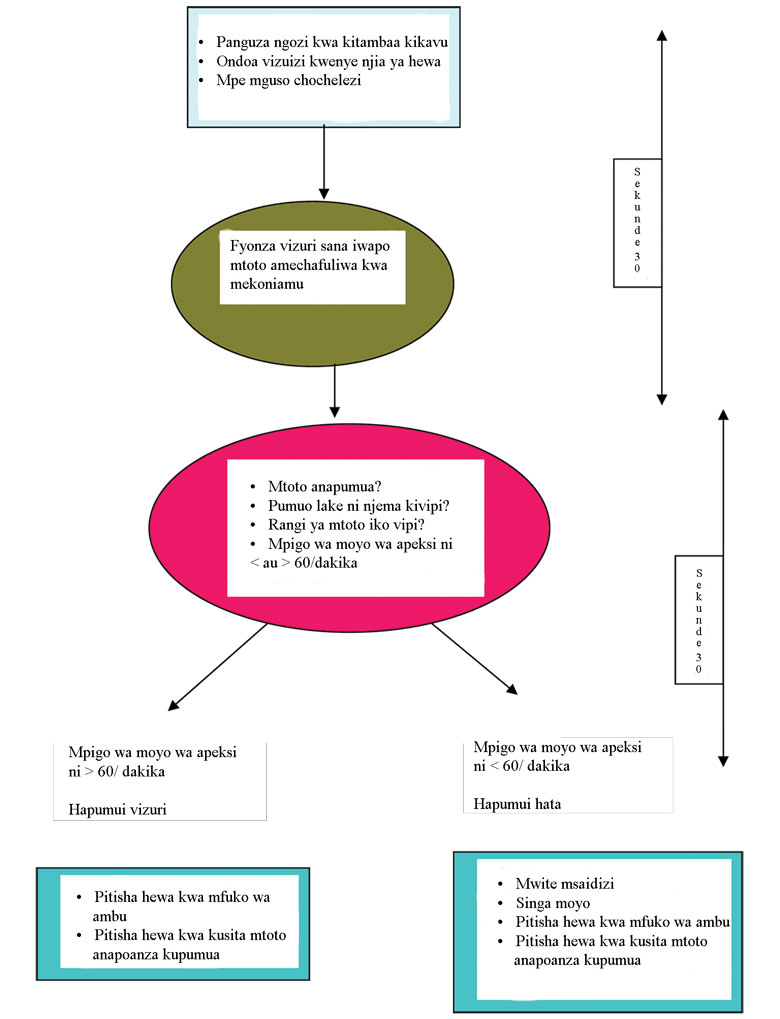 Mchoro 7.15 Muhtasari wa hatua katika uhaishaji wa mtoto mchanga