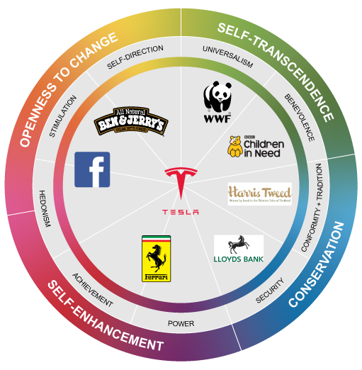Part two of this activity asks you to drag and drop a number of brand logos onto the Theory of Basic Human Values diagram. There are no ‘correct’ answers here, but it helps to remind us that some businesses present strong values as part of their brand image.