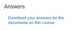 As you work through the course you can save the text you put in the text boxes. This will be available to you any time that you log in to the course. If you want to download any activity answers and any text that you typed and saved in answer boxes, go to the ‘Answers’ box in the left-hand margin and click on ‘Download your answers for the documents on this course’ (see below).
