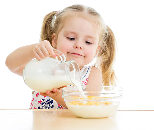 In this picture you can see how Anna, aged three, is pouring a milk into a bowl. Anna has developed the confidence and dexterity to help herself. Instead of waiting passively for adults to take control, Anna is independently taking care of herself.