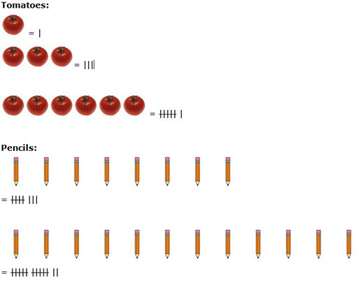 Making tally marks is a useful way to quickly count things in different categories. It involves making a mark or placing a store for each item counted in the particular group. The chart below shows a chart started for siblings in a class of 56 Primary 4 pupils. Each bundle of marks IIII represents five children.