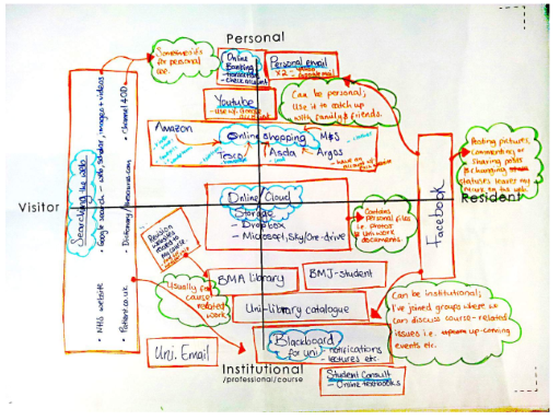 Try, now, to draw your own personal map. Remember that this is about your activity, not about your identity. Nor is any category (visitor or resident) 'better' or 'worse' than anything else. Just use this to think about your own types of engagement with the technologies you use.
