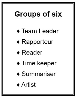 Mr Sy: Children, we are going to work in groups of six.