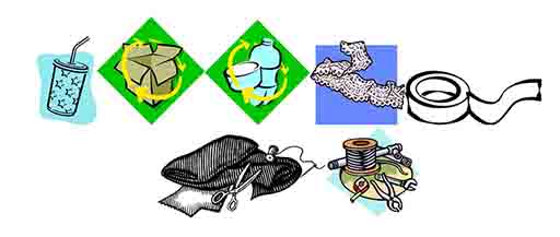 Before this activity, ask your pupils to bring in scrap materials. Collect some yourself. Scrap materials might include: tin; cardboard; string; tape; straws; plastic bottles; fabric; paper; netting; wire.