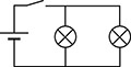 A circuit with one cell and two bulbs in parallel, with a switch controlling both bulbs. Or