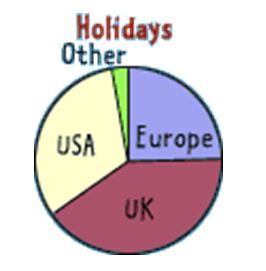 Pie charts are circular, like a pie! Each section of the pie shows a fraction of a total amount. This Pie Chart shows where 40 people from the UK went on their holiday.