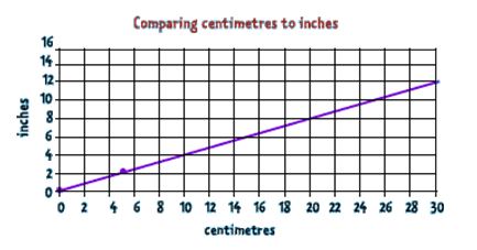 This graph converts centimetres to inches. 5 cm is approximately 2 inches.